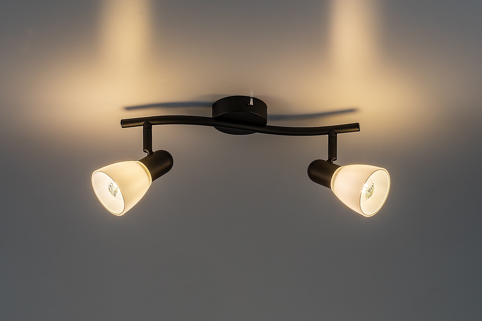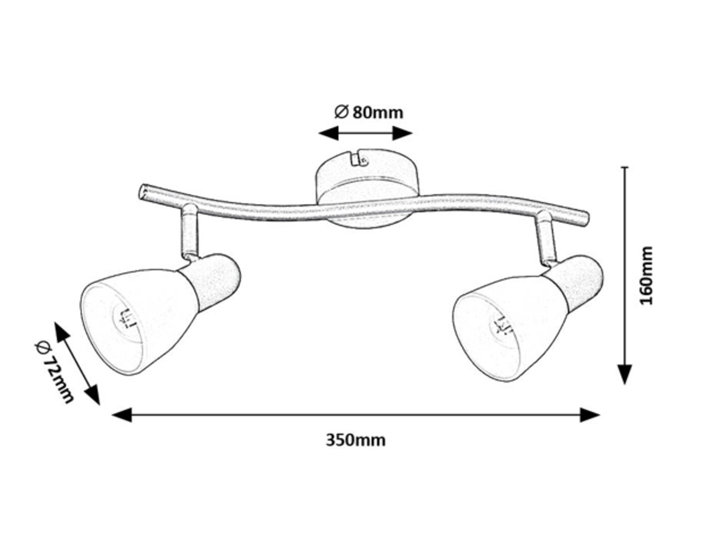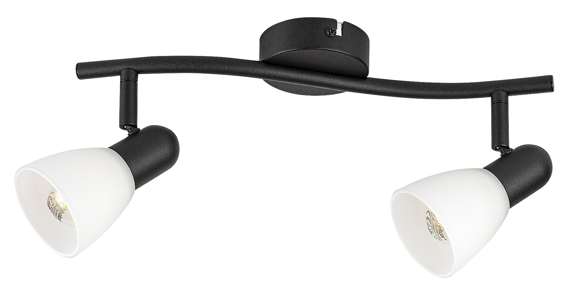 Rabalux Soma stropna reflektorska svjetiljka s 2 žarulje preporučuje se onima koji preferiraju pomične svjetiljke koje pružaju usmjereno, a ne difuzno svjetlo. Ovaj elegantan model idealan je za dnevni boravak, blagovaonicu, hodnik ili spavaću sobu. Reflektorska svjetiljka izrađena je od metala, s crnim postoljem i bijelim staklenim sjenilima u obliku slova A. Pričvršćuje se na strop pomoću male okrugle dekorativne baze. Glave svjetiljki postavljene su na zakrivljenu potporu pričvršćenu za dekorativnu bazu, a zahvaljujući kuglastom zglobu mogu se pomicati, pa se svjetlo može usmjeriti po želji. Ova reflektorska svjetiljka koristi dvije žarulje, svaka snage do 40 W. Vrsta grla: E14. Ovaj model isporučuje se bez izvora svjetla.