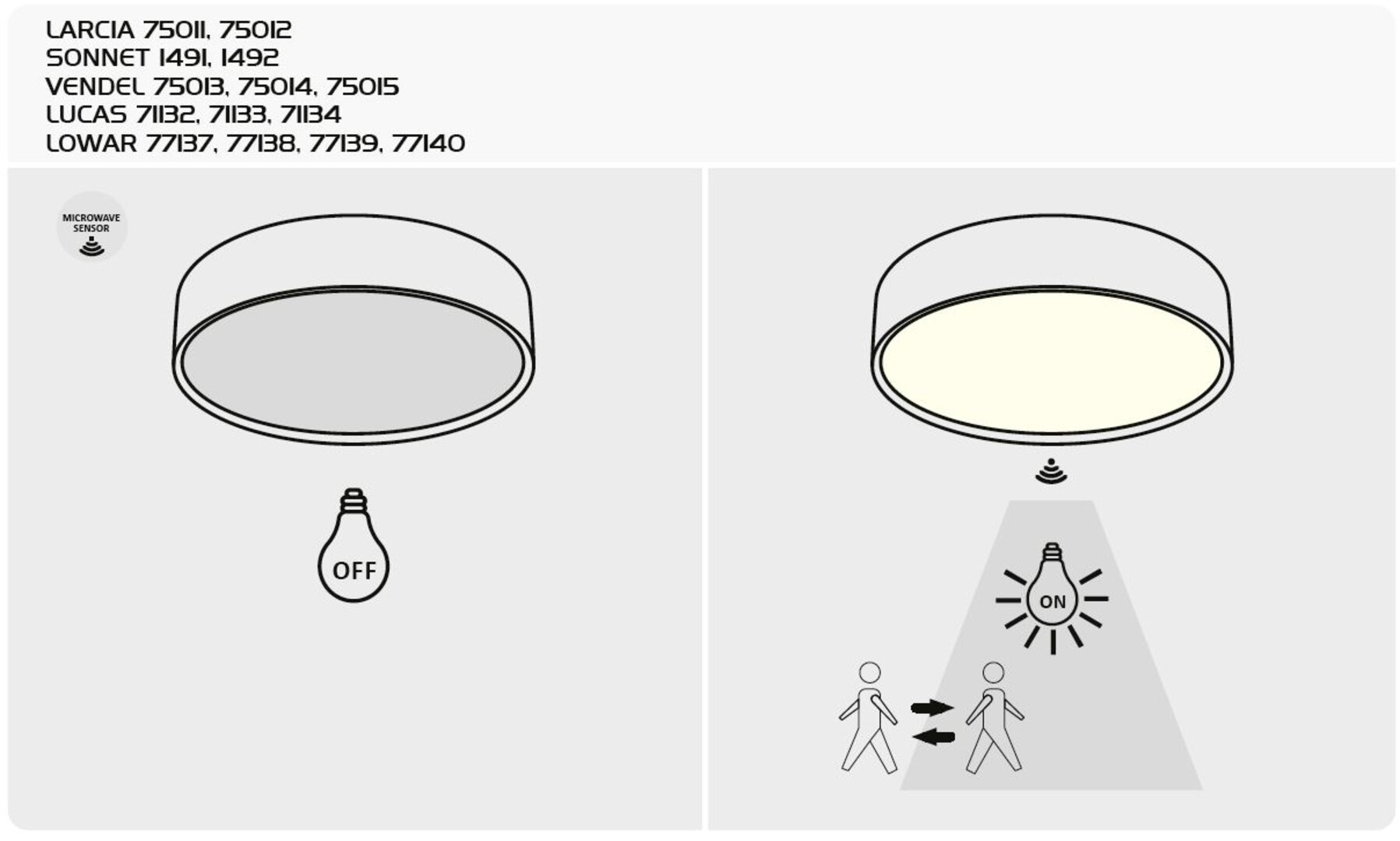 Sa svojom kombinacijom crne i bijele boje i nekoliko dodatnih značajki, okrugla stropna svjetiljka Nilin može biti praktičan i moderan komad namještaja mnogih modernih dnevnih soba. Ovaj crni metalni model čiji je rub ukrašen crnim prugastim uzorkom okruglim na dnu i sa strane, nadopunjen je bijelim plastičnim abažurom. Nilin ima ugrađeni LED izvor svjetla energetskog razreda G snage 48W, svjetlosnog toka 3400 lumena sa sjenilom i 4900 lumena bez sjenila te životnog vijeka 25.000 sati. Temperatura boje ove stropne svjetiljke može se podesiti između 3000–6500 K pomoću prekidača ili daljinskog upravljača, tj. sposobna je zračiti toplu, prirodnu ili hladnu bijelu svjetlost. Osim toga, lampa se može prigušiti pomoću daljinskog upravljača, odnosno po želji joj se može mijenjati i jačina svjetla. Nilin također ima funkciju memorije kojom se može upravljati pomoću daljinskog upravljača ili prekidača, funkciju mjerača vremena koja se može postaviti daljinskim upravljačem i funkciju noćnog svjetla. Promjer ove stropne svjetiljke je 490 mm, udaljenost od stropa je 95 mm.
