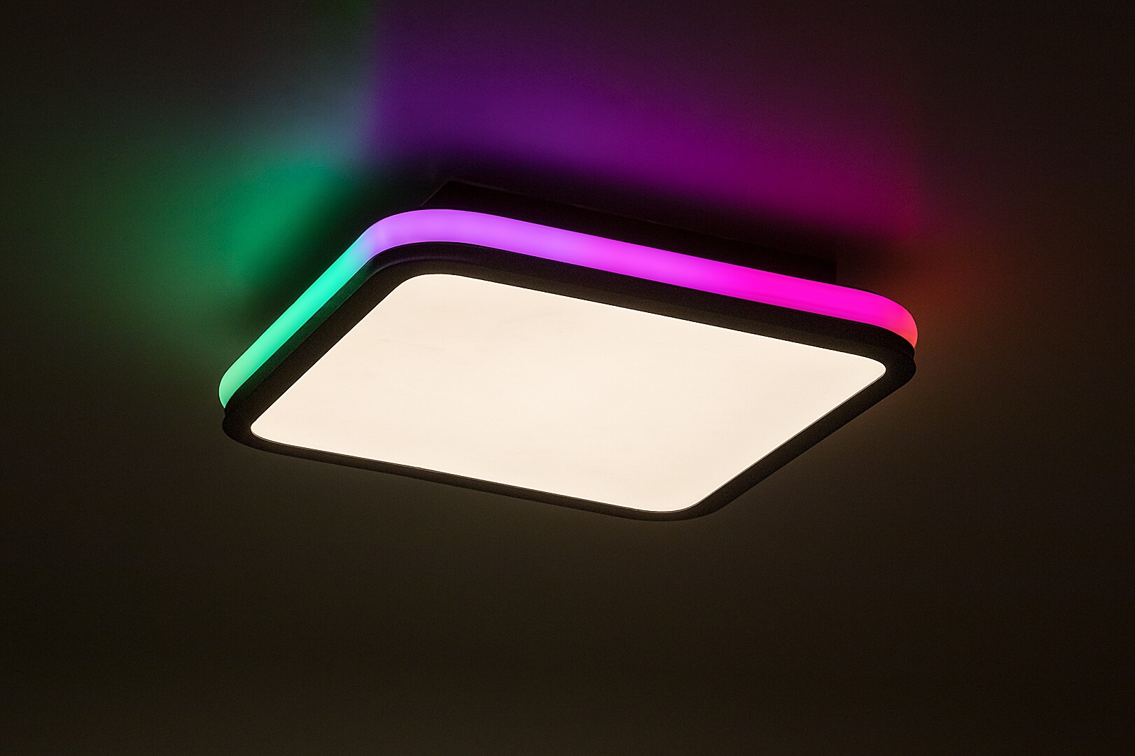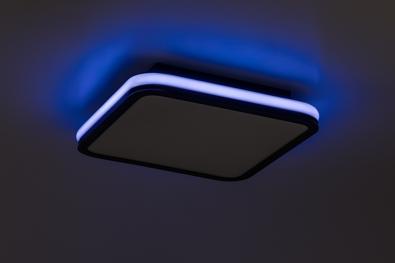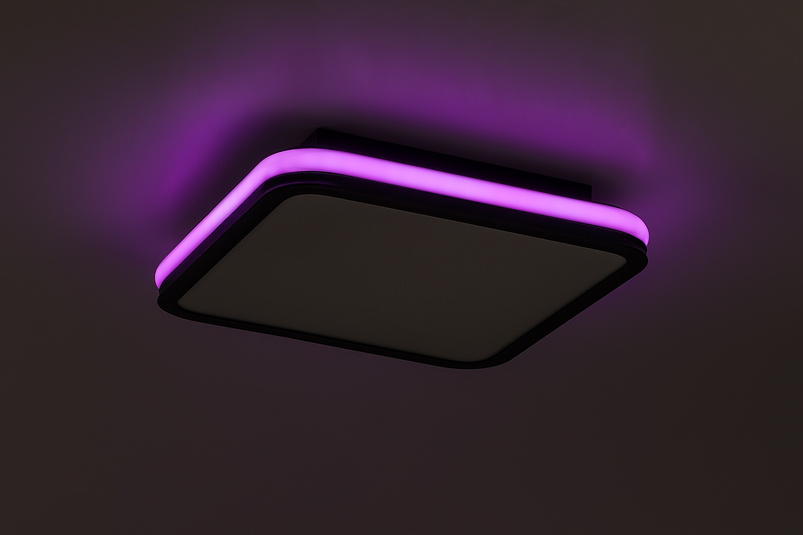 Pametna stropna svjetiljka Rabalux Serkan idealan je izbor za one koji traže model koji kombinira bogatu funkcionalnost s čistim dizajnom. Ova LED svjetiljka izrađena je od metala u crnoj boji, s bijelim plastičnim sjenilom. Kvadratni oblik svjetiljke omekšan je zaobljenim kutovima. Ima ugrađeni LED izvor svjetlosti, čija se temperatura boje može podešavati daljinskim upravljačem ili zidnim prekidačem. Svjetiljka je sposobna za RGB osvjetljenje, koje je istaknuto trakom koja se proteže oko ruba kućišta, a taj se vanjski dio može uključiti zasebno. Pomoću priloženog daljinskog upravljača može se podesiti i jačina svjetla te koristiti funkcija memorije. Zahvaljujući LED tehnologiji, stropna svjetiljka odlikuje se energetskom učinkovitošću i dugim vijekom trajanja. Ovaj svestrani model preporučuje se za dnevni boravak, blagovaonicu ili spavaću sobu.