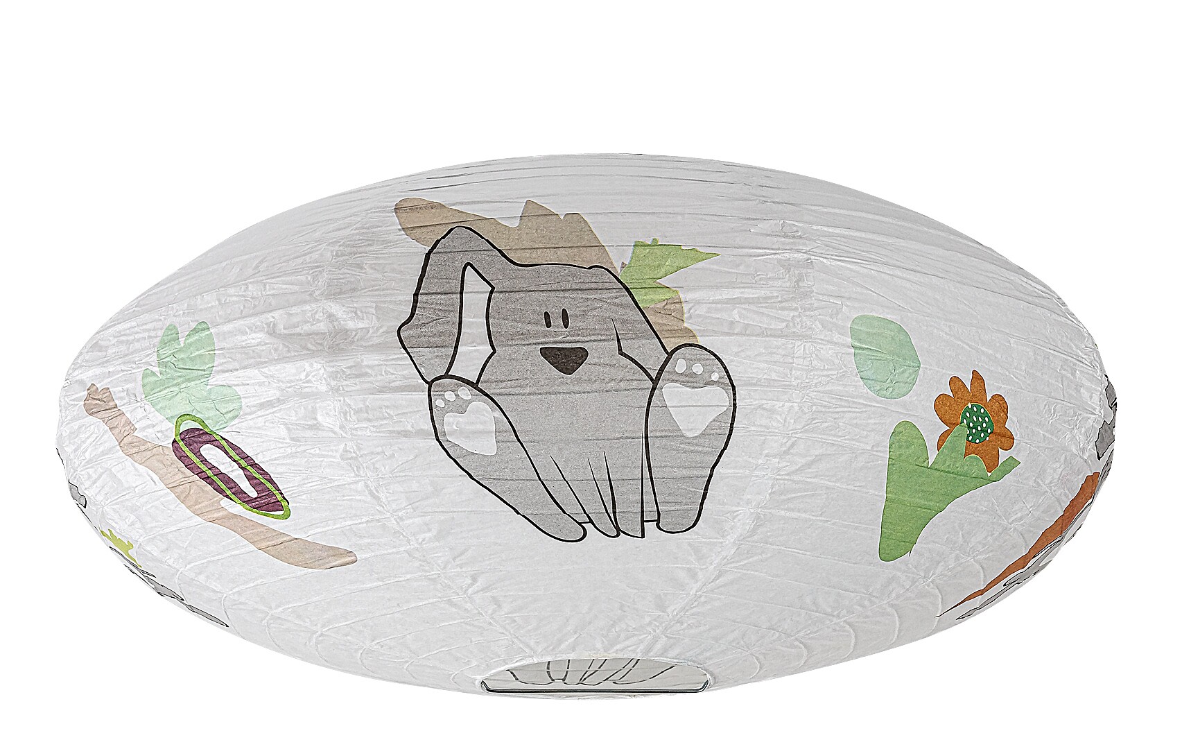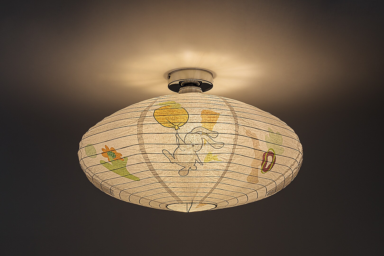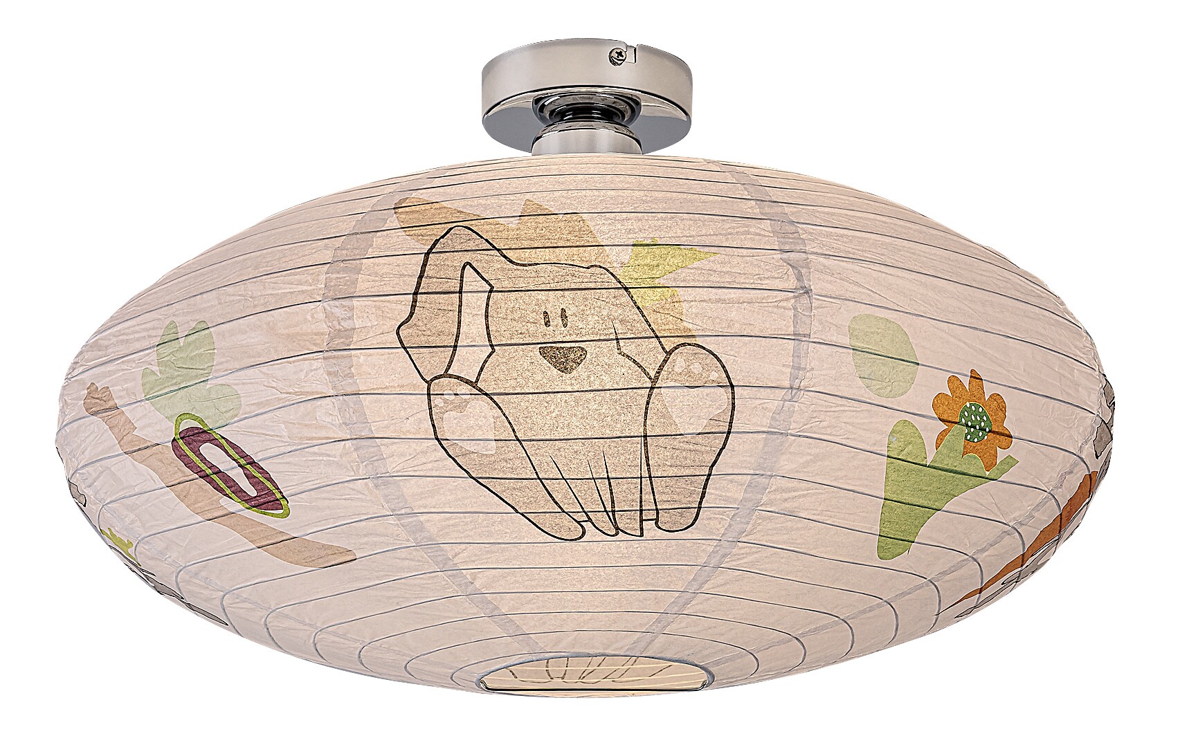 Dječja stropna svjetiljka Rabalux Hopply od papira vlastiti je dizajn Rabaluxa. Preporučuje se svima koji žele dječju sobu učiniti još privlačnijom uz slatke, vesele motive. Svjetiljka je spljoštenog, zaobljenog oblika, izrađena od papira, a ukrašena je simpatičnim uzorkom zeca i balona koji će sigurno osvojiti srce malog stanara sobe. Prevladavajuće boje motiva su narančasta, smeđa i sivkaste nijanse, koje su ugodne i umirujuće za oko te odišu toplinom. Dječja svjetiljka koristi jednu žarulju snage do 40 W. Ako želite dodatno naglasiti ugodnu, intimnu atmosferu, odaberite žarulju s toplim bijelim svjetlom. Svjetiljka za dječju sobu isporučuje se bez grla i izvora svjetla.