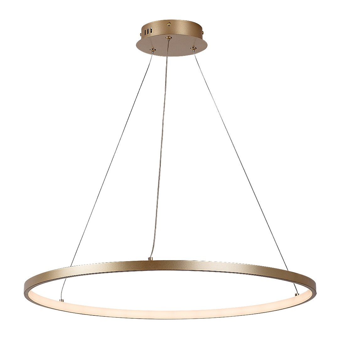 Rabalux Beliza viseća svjetiljka preporučuje se onima koji cijene funkcionalnost i čist, elegantan dizajn. Ova moderna viseća svjetiljka ima jednostavno, prstenasto metalno postolje u sjajnoj zlatnoj boji. Sjenilo se proteže uz unutarnju stranu prstena i izrađeno je od bijelog silikona. Viseća svjetiljka pričvršćuje se za strop pomoću okrugle zlatne dekorativne baze i srebrnih metalnih sajli. Ima integrirani LED izvor svjetla koji emitira toplo bijelo svjetlo. Viseća svjetiljka pruža izvanrednu svjetlinu, što je čini savršenom za osvjetljavanje prostranih prostorija. Idealna je za dnevni boravak, blagovaonicu ili spavaću sobu. LED tehnologija ovom modelu osigurava energetsku učinkovitost i dug vijek trajanja.
