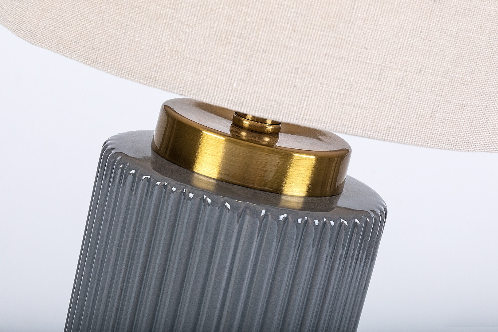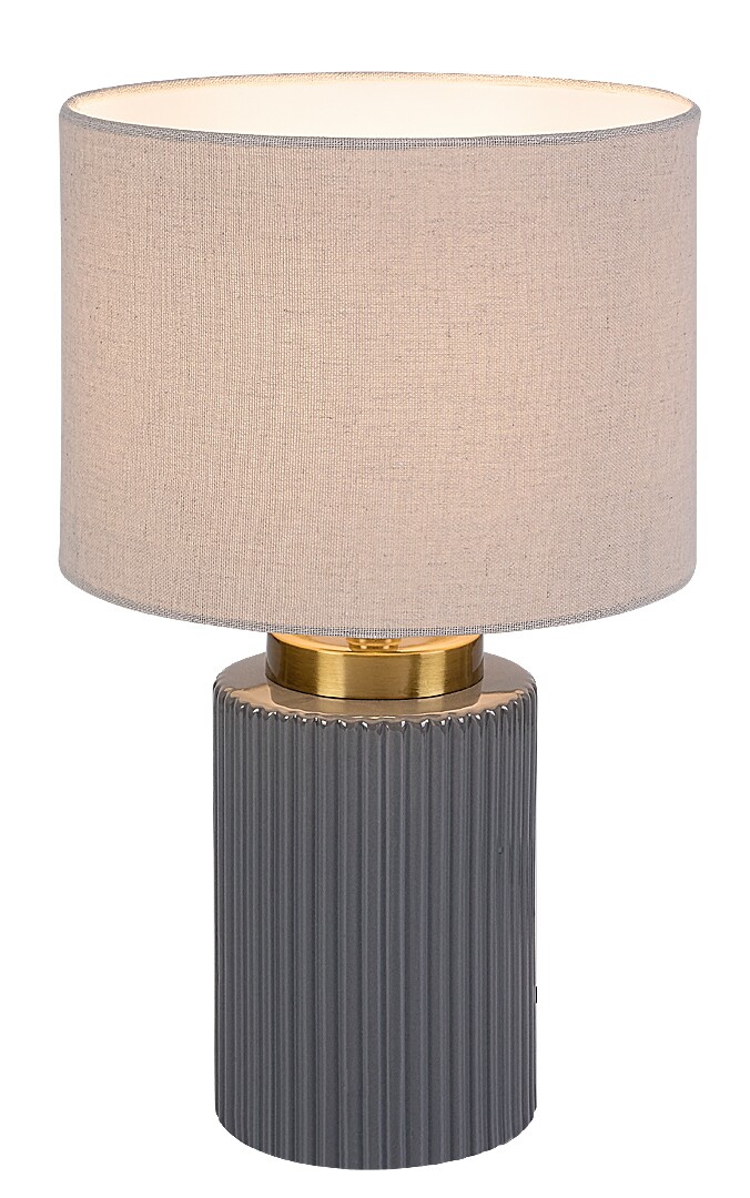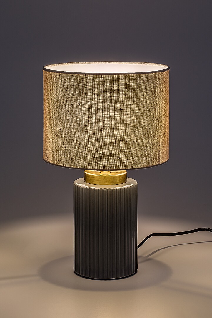 Rabalux Glovy stolna svjetiljka preporučuje se onima koji traže pažljivo dizajniranu dopunsku svjetiljku za spavaću sobu ili dnevni boravak. Zahvaljujući suzdržanim bojama, ovaj se model lako uklapa u različite stilove interijera. Možete je postaviti na noćni ormarić ili stol. Postolje je izrađeno od keramičkog materijala sive boje s rebrastim uzorkom, dok je sjenilo od bijelog tekstila. Sjenilo je cilindričnog oblika, otvoreno s gornje i donje strane. Zahvaljujući svijetloj boji, svjetiljka propušta puno svjetla, pa se može koristiti i kao svjetiljka za čitanje. Radi s jednom žaruljom snage do 40 W. Vrsta grla: E14. Noćna svjetiljka nadopunjena je crnim tekstilnim kabelom i prekidačem na kabelu. Isporučuje se bez izvora svjetla.