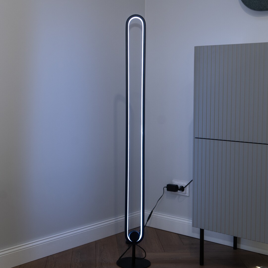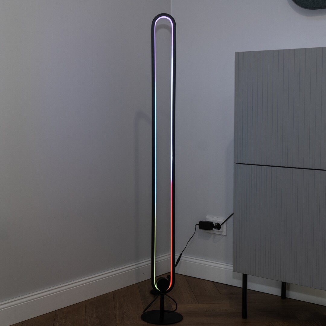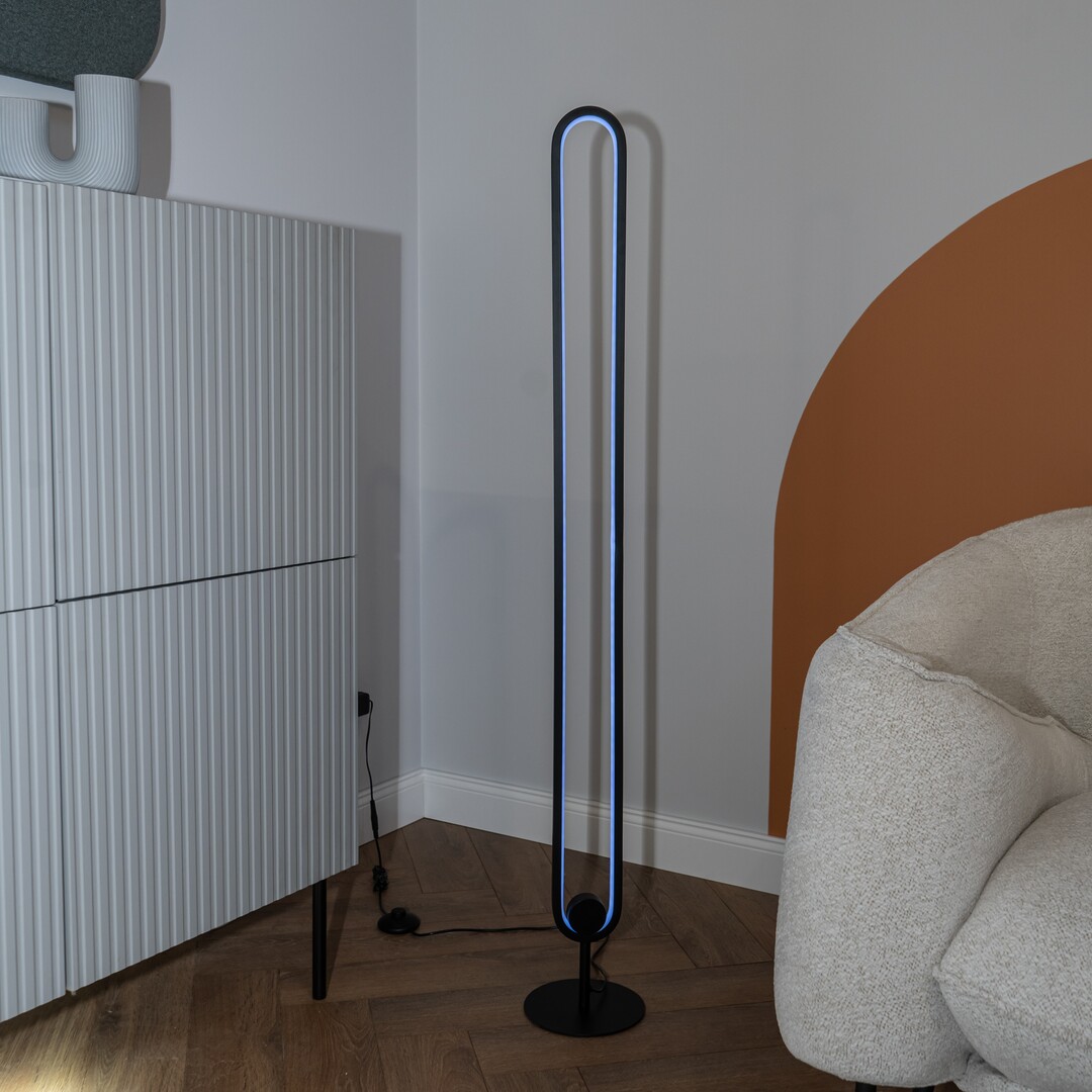 Barto podna svjetiljka može biti uzbudljiv komad namještaja vaše moderne dnevne sobe. Ovaj model ima jednostavan, čist dizajn i lako se može uklopiti čak i u prostoriju minimalističkog stila. Mat crna metalna svjetiljka Barto nadopunjena je bijelim plastičnim abažurom i okruglim, ravnim, crnim ukrasnim postoljem. Ugrađeni LED izvor svjetla ima snagu od 19W i životni vijek od 25.000 sati. Ovaj model ima mogućnost RGB osvjetljenja, te zahvaljujući podesivim bojama učinkovito pomaže u stvaranju ugodne atmosfere potrebne za opuštanje i odmor u večernjim satima. Zahvaljujući malom prostoru može se lako postaviti u kut pored sofe ili bilo gdje u dnevnoj sobi. Barto ima funkciju memorije kojom se može upravljati pomoću daljinskog upravljača ili prekidača. Ova podna lampa ima širinu od 100 mm, visinu od 1250 mm, duljina kabela je 2100 mm.
