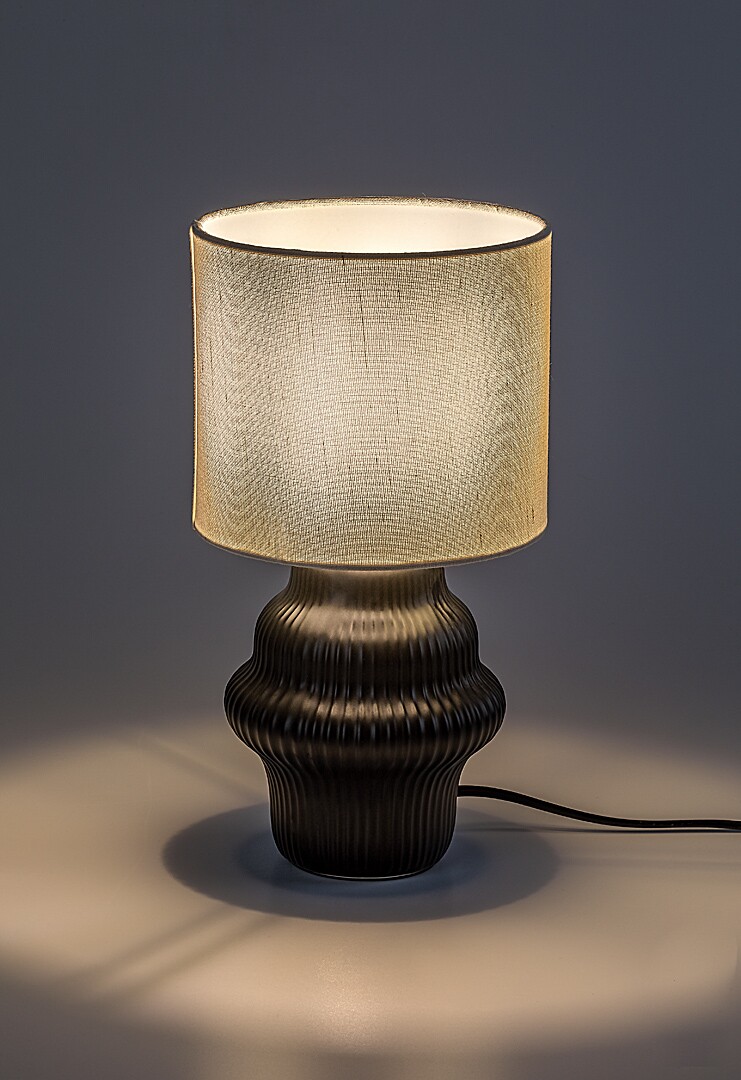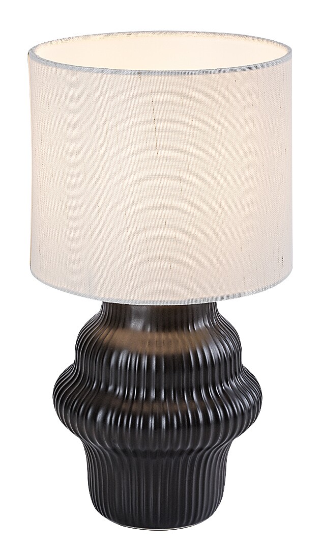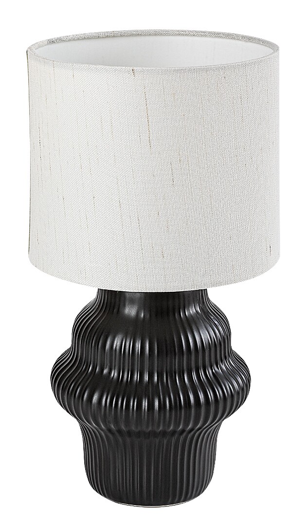 Rabalux Glimo stolna svjetiljka idealna je za one koji traže funkcionalnost, ali i estetiku. Ovaj model preporučujemo za spavaću sobu, dnevni boravak i radnu sobu. Zahvaljujući klasičnoj crno-bijeloj kombinaciji boja, lako se uklapa u gotovo svaki interijer. Može se postaviti na stol, radni stol ili noćni ormarić. Postolje ima zanimljiv rebrasti uzorak i proširen oblik u sredini. Izrađeno je od crne keramike, dok je sjenilo izrađeno od bijelog tekstila. Sjenilo je cilindričnog oblika, otvoreno na vrhu i dnu, a njegova svijetla boja omogućuje propuštanje velike količine svjetla. Noćna svjetiljka radi s jednom žaruljom snage do 40 W. Vrsta grla: E14. Opremljena je prekidačem na kabelu i isporučuje se bez izvora svjetla.
