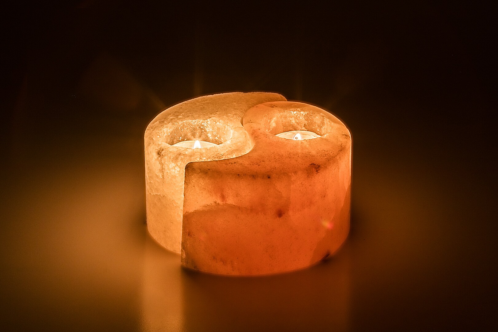 Rabalux Soluna držač za svijeće preporučuje se onima koji preferiraju ugodne dekorativne svjetiljke izrađene od prirodnih materijala. Stolna svjetiljka izrađena je od kamene soli u kombinaciji narančaste i bijele boje, oblikovana poput simbola yin-yang. Ovaj toplinski držač za svijeće savršen je dodatak za mnoge prostorije u vašem domu: može biti izvrstan dodatak rasvjeti u spavaćoj sobi, dnevnom boravku, blagovaonici, pa čak i kupaonici. Što može biti opuštajuće od večere uz svijeće u miru vašeg doma ili ugodne kupke uz opuštajuću glazbu i svjetla? Stolna svjetiljka može primiti dvije čajne svijeće. Grlo i žarulja nisu uključeni.